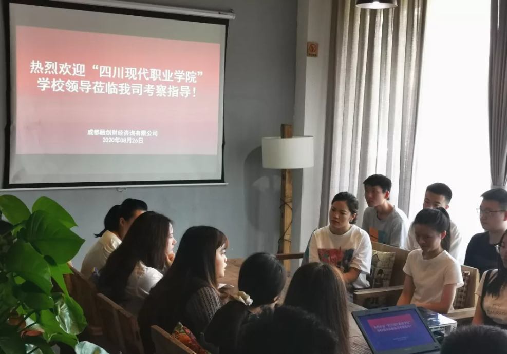 8月26号上午9点,,,,“四川现代职业学院”纪委书记、、、工会主席程勇,,学生处处长蒋建华,,,,教务处副处长周昱宇,,,,专业建设处长李成,,学院办公室副主任刘学,,,财经系副系主任杜春莅临成都融创财经咨询有限公司考察指导。。。